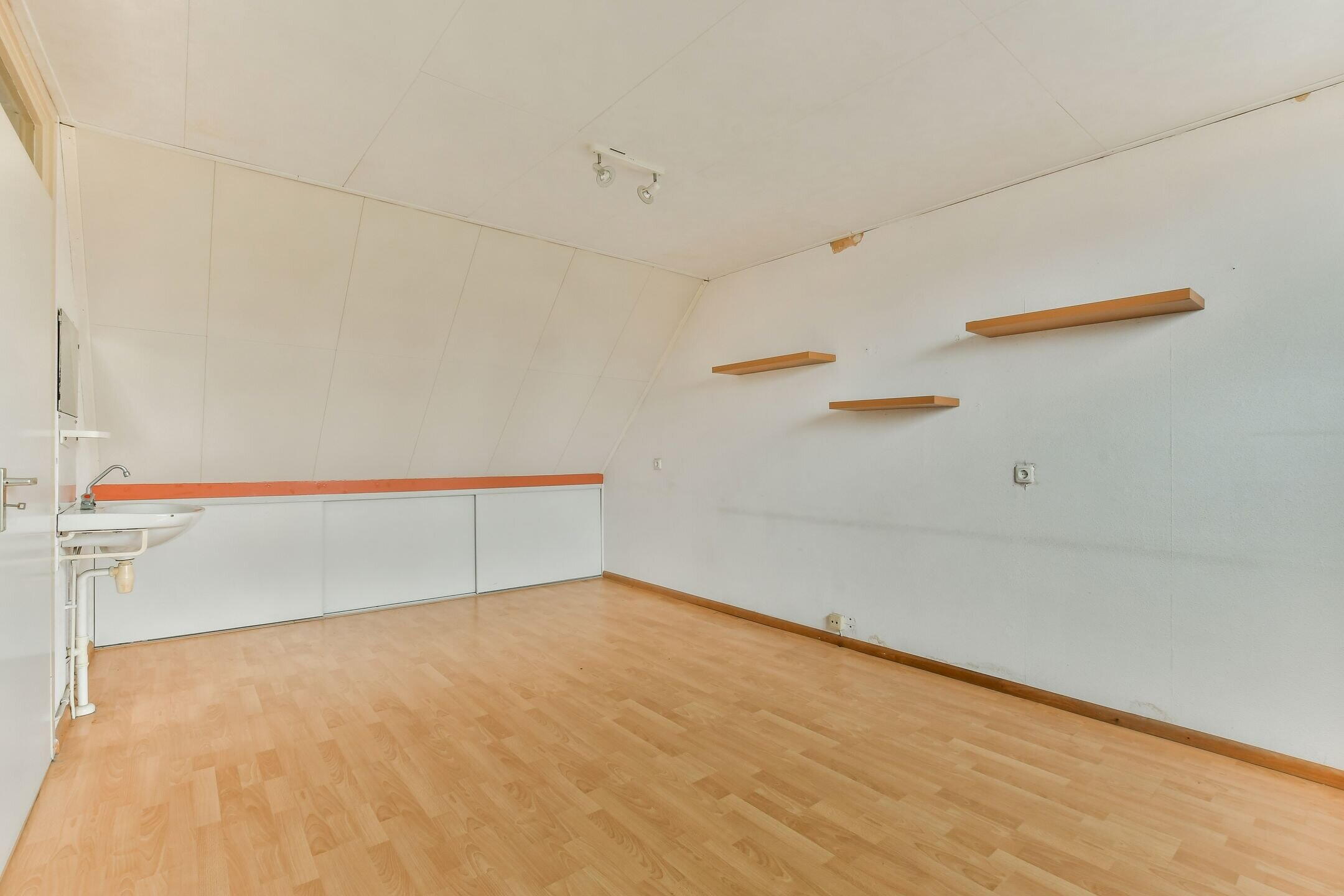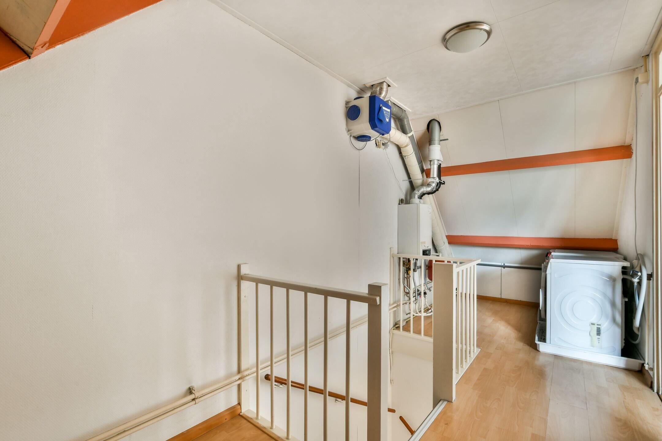 Voorzolder met de witgoedaansluitingen, de cv-installatie, de mechanische ventilatie unit en toegang tot de 4de slaapkamer. Deze ruime slaapkamer is voorzien van een dakkapel met rolluiken en een wastafel. Achter de knieschotten vind je praktische bergruimte. De mogelijkheid bestaat om deze kamer in 2 slaapkamers te splitsen.