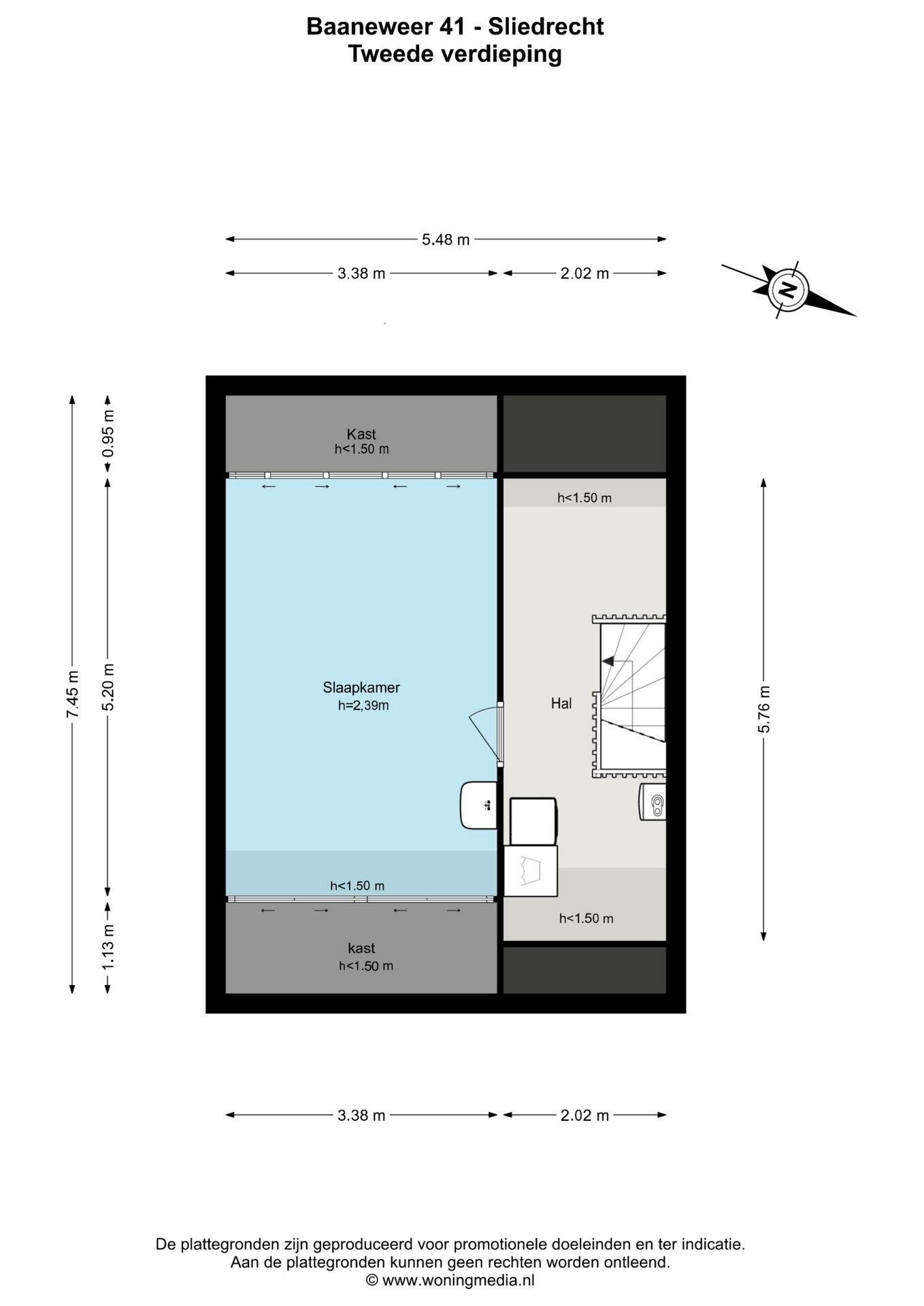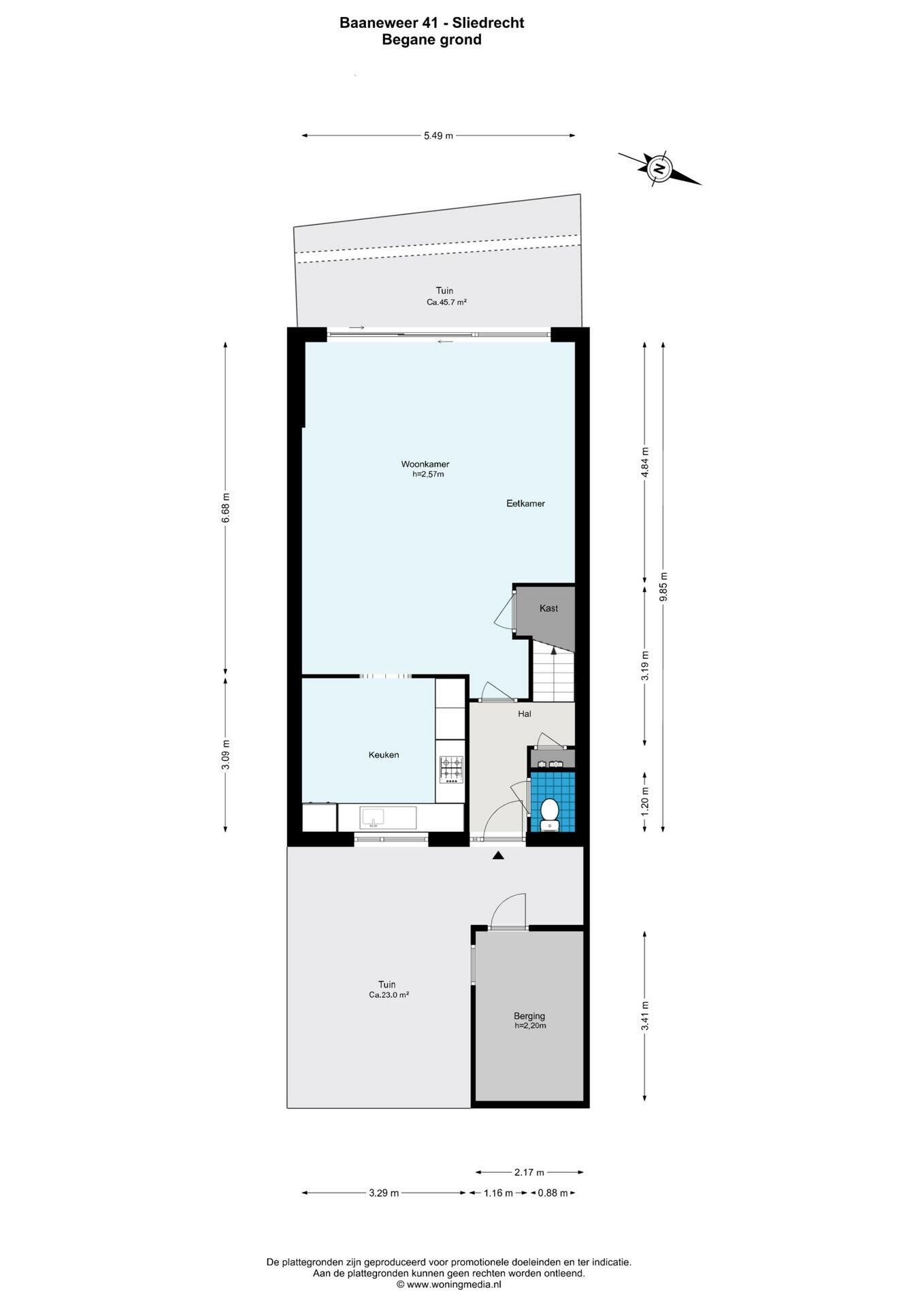 - 46 m² (7,90 meter diep en 5,80 meter breed)
